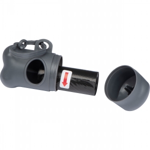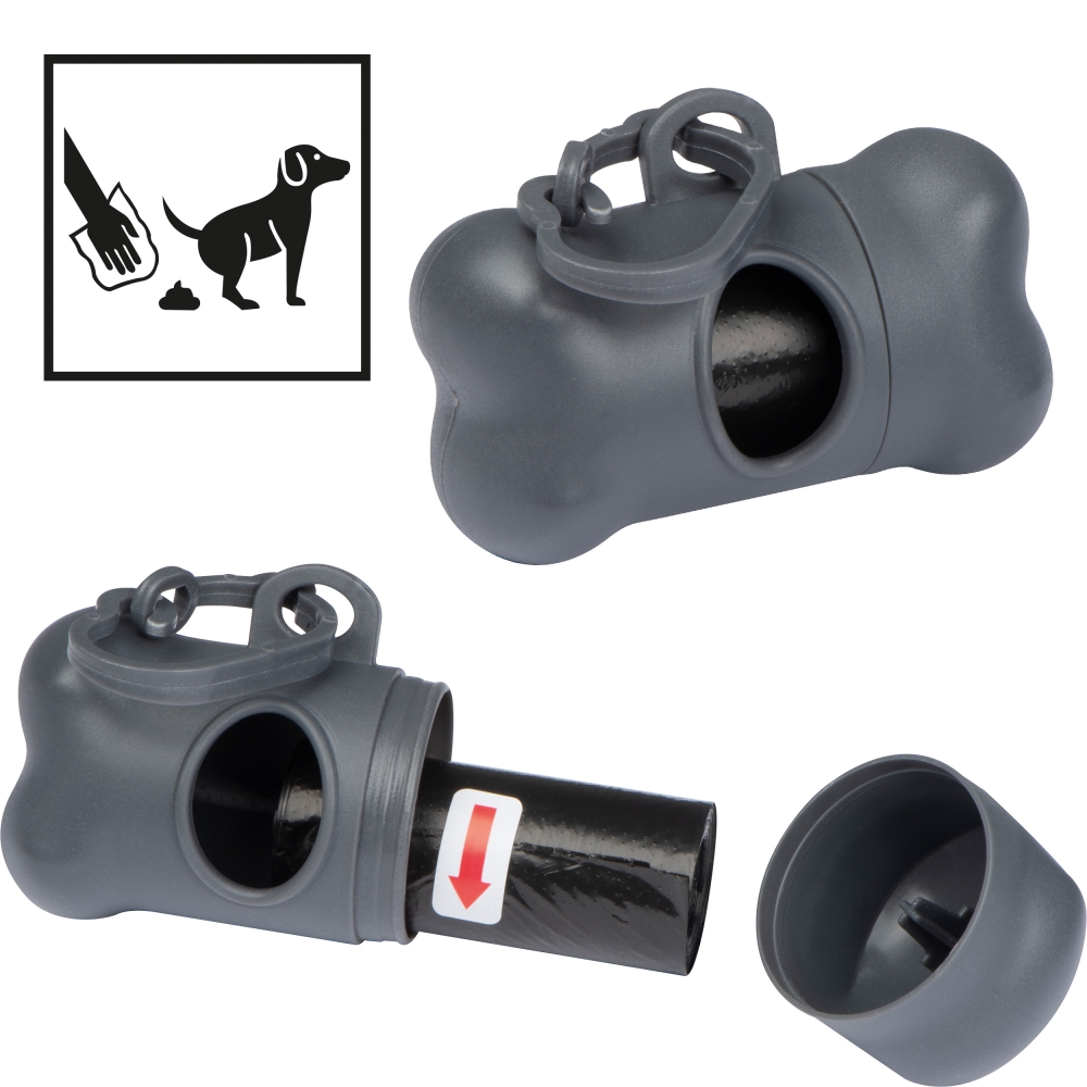 Artikel-Nr: EAG323377Aufschraubbarer Hundekotbeutelspender in der Form eines Knochens mit Karabinerhaken aus Kunststoff und 15 biologisch abbaubaren Beuteln. Ihre Werbung wird auf das Gehäuse gedruckt.