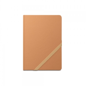 Artikel-Nr: PST93338-111A5-Notizbuch mit festem Einband aus wasserdicht Kraftpapier und abgerundeten Ecken. Mit 160 linierten Seiten (70 g / m²) auf elfenbeinfarbenem Papier aus FSC™-zertifiziertem Material und anderen kontrollierten Materialien, Trennband und Gummiband an der Diagnose zum Verschließen des Notizbuchs. 148 x 210 mm