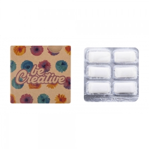Artikel-Nr: AND7168496 Stück zuckerfreier Kaugummi im Blister mit individuell gestalteter, vollfarbig bedruckter Kraftpapierhülle. MOQ: 100 Stück.