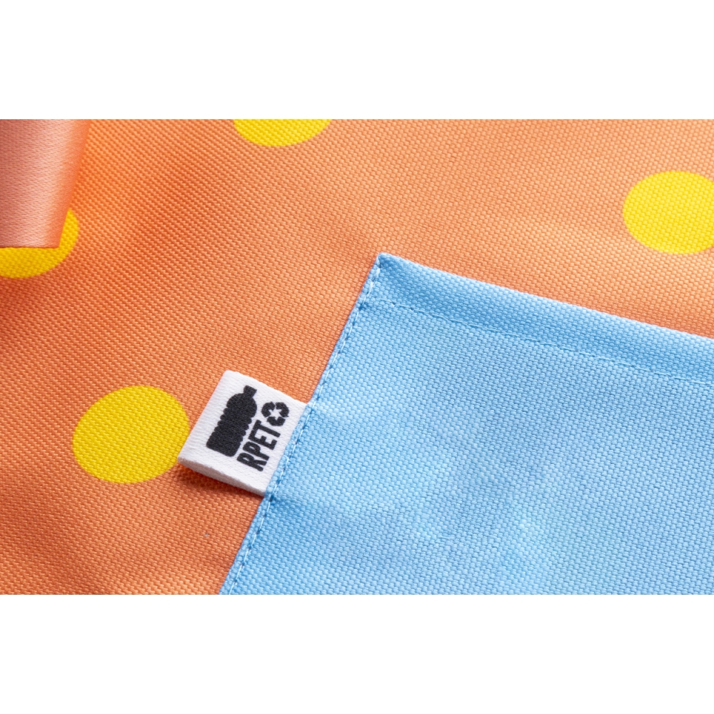 Artikel-Nr: AND716916Individuelle Bistro-Schürze aus 600D RPET-Polyester mit dreifacher Fronttasche und vollflächigem Sublimationsdruck. Mindestmenge: 25 Stk. Mit RPET-Label.