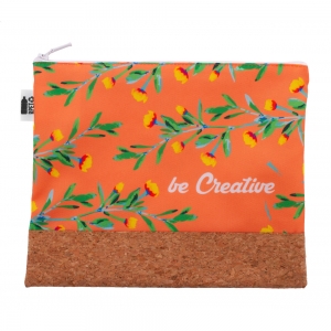 Artikel-Nr: AND716589-01Individuelle Reißverschluss-Kosmetiktasche aus 600D RPET Polyester und natürlichem Kork mit vollflächigem Sublimationsdruck. Mindstmenge: 50 Stk.
