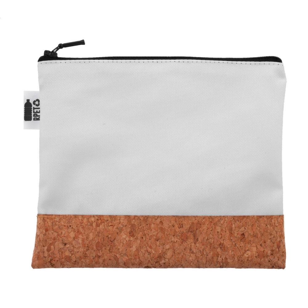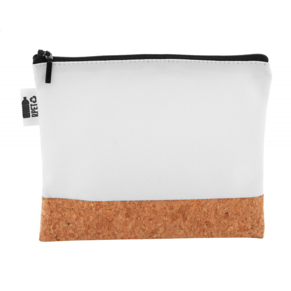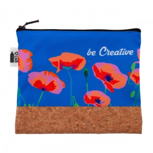 Artikel-Nr: AND716588-10Individuelle Reißverschluss-Kosmetiktasche aus 600D RPET Polyester und natürlichem Kork mit vollflächigem Sublimationsdruck. Mindstmenge: 50 Stk.