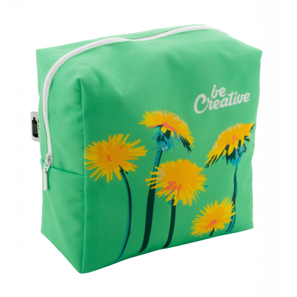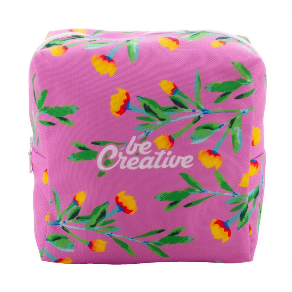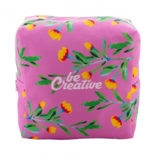 Artikel-Nr: AND716593-01Individuelle, quadratische Reißverschluss-Kosmetiktasche aus 600D RPET Polyester mit vollflächigem Sublimationsdruck. Mindesmenge: 50 Stk.