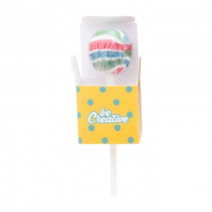 Artikel-Nr: AND716903Lolly mit Fruchtgeschmack (8 g) in individueller, vollfarbig bedruckter Papierschachtel. Mindestmenge: 100 Stk.