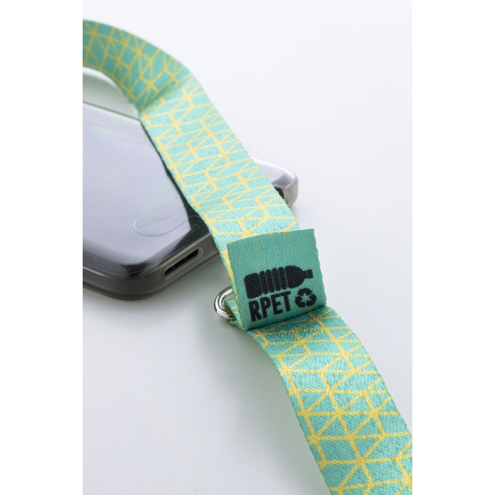 Artikel-Nr: AND716939-10Individuelles Handyhalter-Lanyard aus RPET mit Metallkarabiner und Handyhalter aus reißfestem Papier. Inklusive Sublimationsdruck auf beiden Seiten. Mindestmenge: 100 Stk.