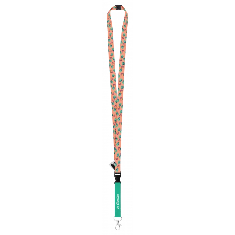 Artikel-Nr: AND718966Individuelles Lanyard aus RPET, 15mm breit, mit abnehmbaren Metallkarabiner und Panikverschluss. Der Preis ist inkl. Sublimationsdruck auf beiden Seiten. Mindestmenge: 100 Stk.