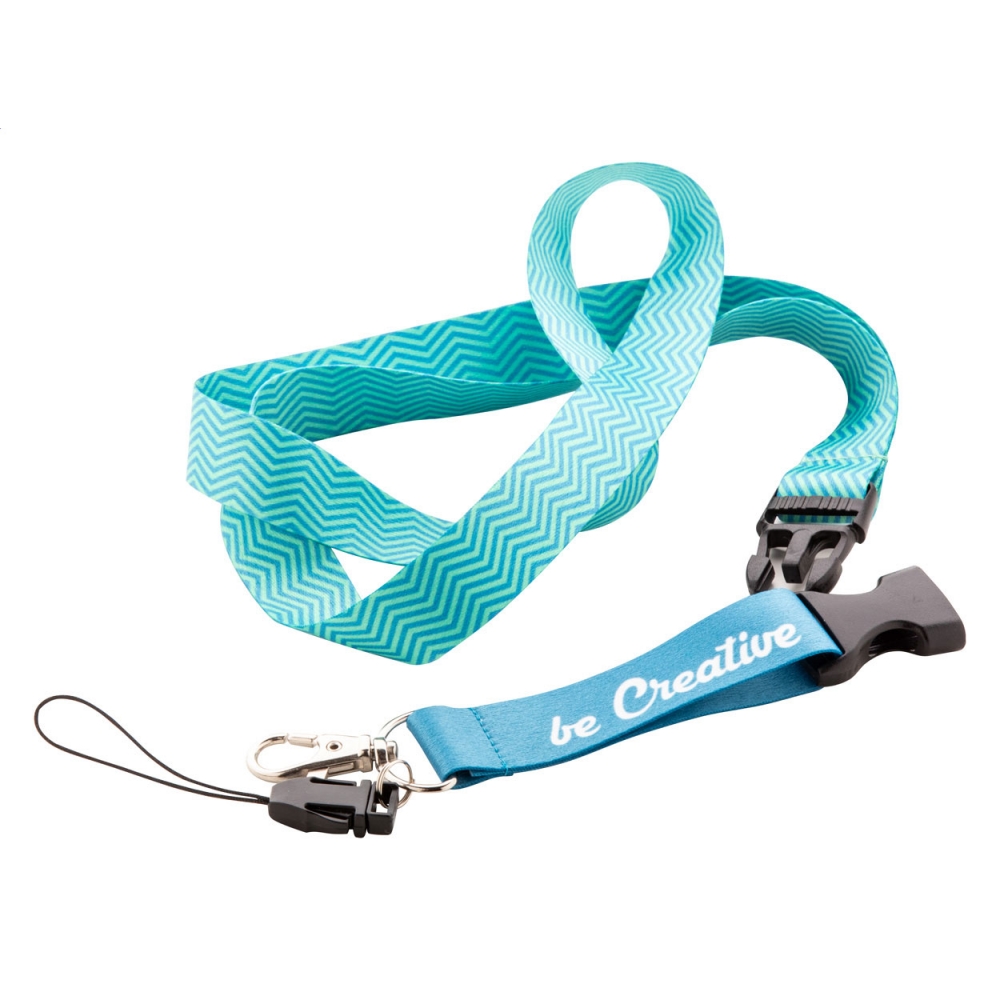 Artikel-Nr: AND718967Individuelles Lanyard aus RPET mit abnehmbaren Metallkarabiner und Handyfaden. Der Preis ist inkl. Sublimationsdruck auf beiden Seiten. Mindestmenge: 100 Stk.