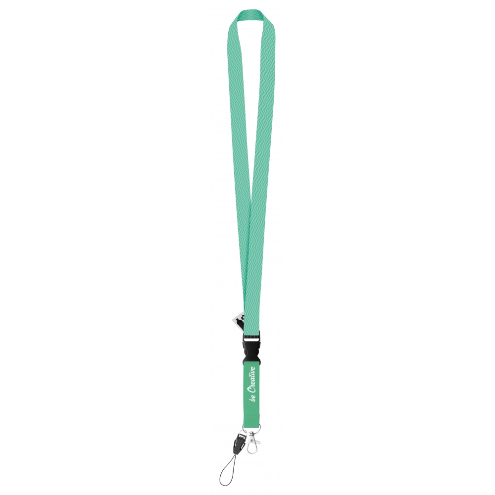 Artikel-Nr: AND718967Individuelles Lanyard aus RPET mit abnehmbaren Metallkarabiner und Handyfaden. Der Preis ist inkl. Sublimationsdruck auf beiden Seiten. Mindestmenge: 100 Stk.