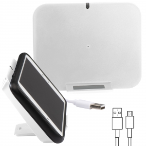 Artikel-Nr: EAG090506Induktionsladegerät aus Kunststoff inkl. USB-Ladekabel. Laden Sie Ihr Smartphone einfach ohne Kabelverbindung auf. Der Wireless Charger dient gleichzeitig auch als Ständer für Ihr Smartphone. Ihre Werbung drucken wir vorne mittig auf das Induktionsladegerät.