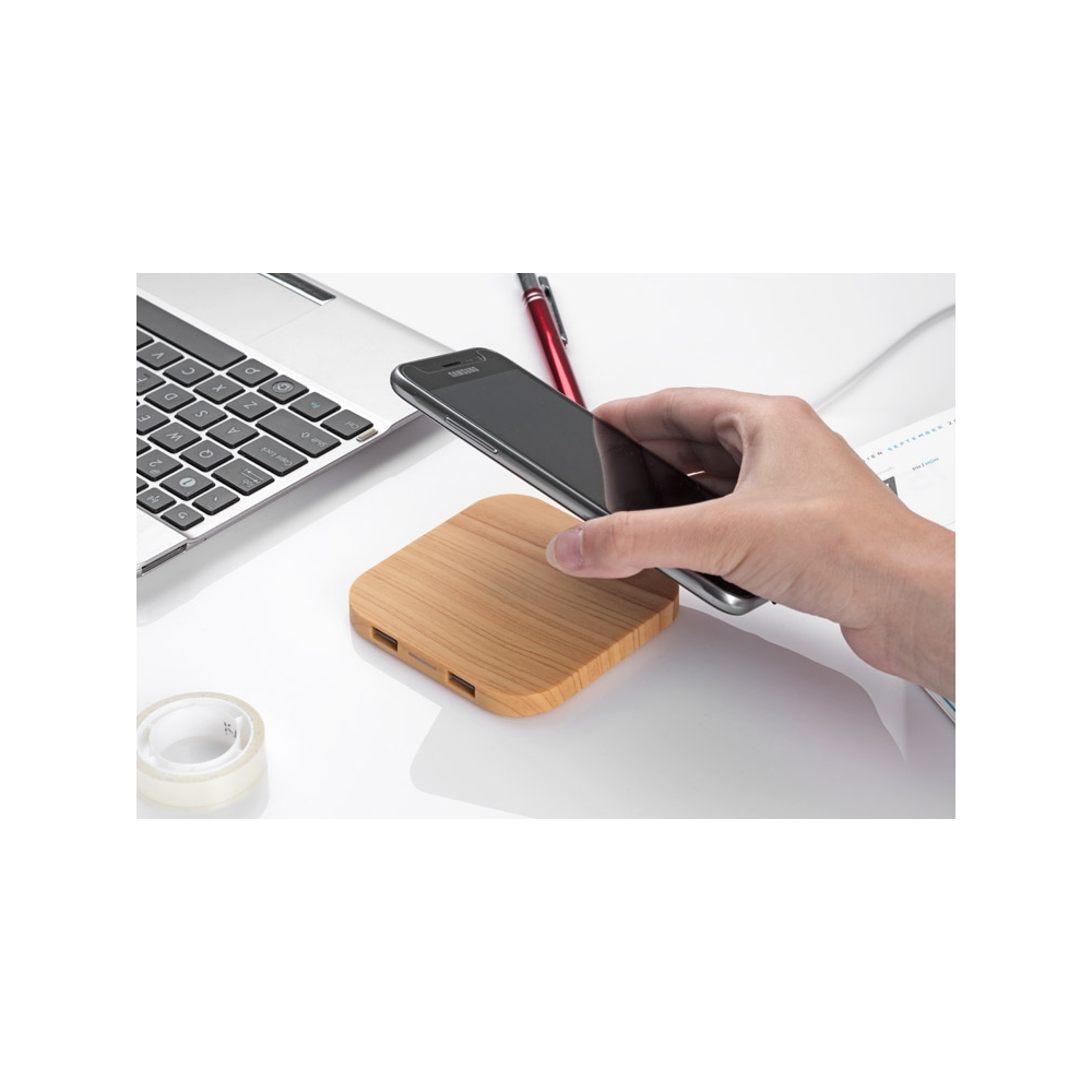Artikel-Nr: ARD09087Das elegante LINO Induktionsladegerät mit Holzoptik fällt sofort ins Auge und lässt Sie die ewig verknoteten Kabel vergessen. Drahtlose Ladetechnologie wird immer häufiger in mobilen Geräten verwendet, weshalb ein solches Gadget eine großartige Idee für ein Geschenk ist. Technische Daten: 5V/1,5A Eingang, 5V/1A Ausgang. Warten Sie nach dem Anschließen des Geräts etwa 1 Minute, um das elektromagnetische Feld zu stabilisieren