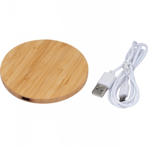Artikel-Nr: EAG245713Runder Wireless Charger aus Bambus mit Ladekabel. Geeignet für alle QI-fähigen Smartphones. Ihre Werbung gravieren wir auf das Ladegerät.