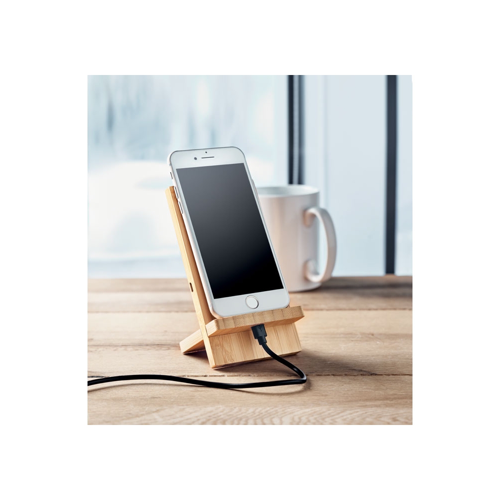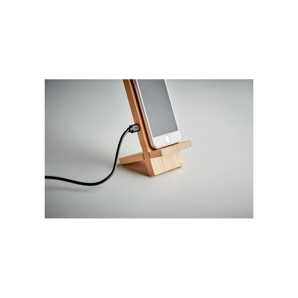 Artikel-Nr: OCBMO6277-40Induktive Double Coil Ladestation aus Bambus. Platzieren Sie Ihr Smartphone zum Aufladen auf den Halter. 2teilig, Montage erforderlich. Ausgang: DC 9V/1,1A (10W) für schnelles Aufladen. Bambus ist ein natürliches Produkt, es kann daher zu leichten Abweich FSC 100% | N5.7 | FSC-C213206