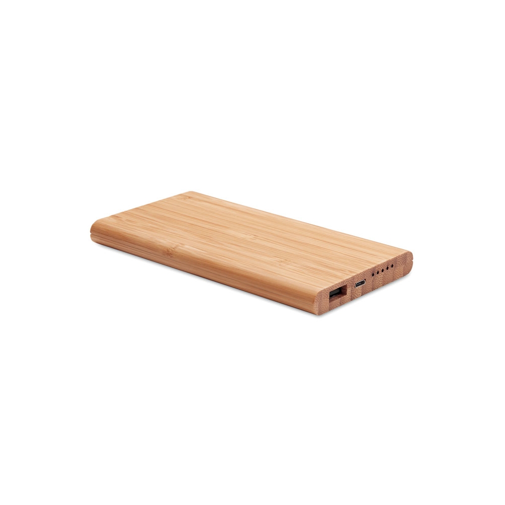 Artikel-Nr: OCBMO9662-406000 mAh Powerbank mit induktiver Ladestation. Bambusgehäuse. Inkl. Typ- C-Adapter. Ausgangsstrom Powerbank DC9V/1.66A (15W). Kabelloser Ausgangsstrom: DC9V/1.66A (5W). Bambus ist ein natürliches Produkt, es kann daher zu leichten Abweichungen in Farbe,