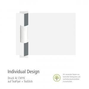 Artikel-Nr: SAN40-400-003-01mit für 1 TeaStick (Individuelles Design). Der, für Material: Karton mit seidenmattem Glanz aus kontrolliert ökologischer und nachhaltig bewirtschafteter Forstwirtschaft. Druck auf Vorder- und Rückseite: 4c (CMYK). Inklusive 1 Bio TeaStick (konfektionierte Lieferung): • hergestellt aus Pflanzenfasern und Stärke • ohne Gentechnik • vegan • nicht erdölbasiert • zu 100% aus nachwachsenden und natürlichen Rohstoffen • Stick biologisch abbaubar (kompostierbar) • Aromaverpackung aus Papier Der innovative TeaStick ist purer Genuss und dabei noch sehr praktisch. Stick direkt in die Tasse mit heißem Wasser geben, ziehen lassen, fertig! Durch die Perforation zirkuliert das Wasser, das Vlies hält Brösel sicher zurück. Auswahl aus vielen Sorten. BIO Kontrollstelle DE-ÖKO-039. Druck: 4c (CMYK) auf Aromaschutzverpackung aus Papier (Entsorgung im