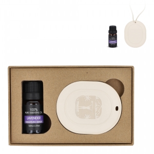 Artikel-Nr: ART57306N0072Das InSideOut Aroma-Geschenkset enthält einen porösen Aufhänger, der mit ein paar Tropfen reinem Öl den natürlichen Duft von Lavendel dezent verbreitet. Ideal für kleine Räume wie Schlafzimmer, Badezimmer oder dem Kleiderschrank. Die schöne Geschenkbox, die in fast jeden Briefkasten passt, enthält eine luxuriöse Aufhängeschnur.
