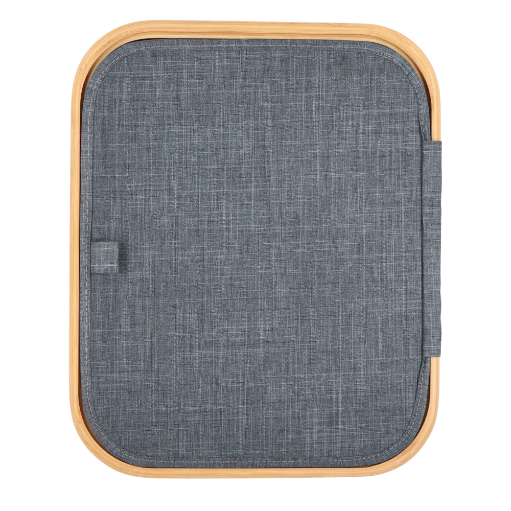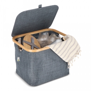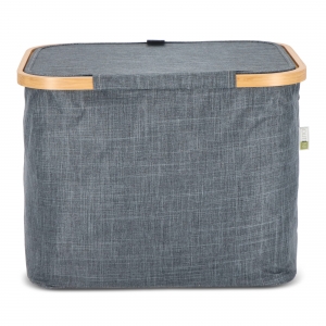Artikel-Nr: ART57104N0060Dieser faltbare Korb Sogne von InSideOut ist eine stilvolle und nachhaltige Aufbewahrungslösung aus recycelten Materialien und Bambus. Das moderne Design passt perfekt in jedes Interieur und sorgt dafür, dass jeder Raum ordentlich und sauber bleibt. Der Korb hat einen Deckel und ist sowohl faltbar als auch stapelbar, was ihn funktional und platzsparend macht. Jede Ecke des Korbs ist mit textilummantelten Stützen verstärkt, die einfach unter dem Bambusrahmen mit Klettverschluss befestigt werden können. Dank dieses cleveren Systems kann der Korb schnell gefaltet und entfaltet werden, was ihn einfach zu lagern und ideal für den täglichen Gebrauch macht. Kurz gesagt, der faltbare Korb Sogne vereint Nachhaltigkeit, Stil und Praktikabilität in einem. Es gibt Platz für einen Druck auf dem Deckel, sodass Ihr Logo immer sichtbar ist.