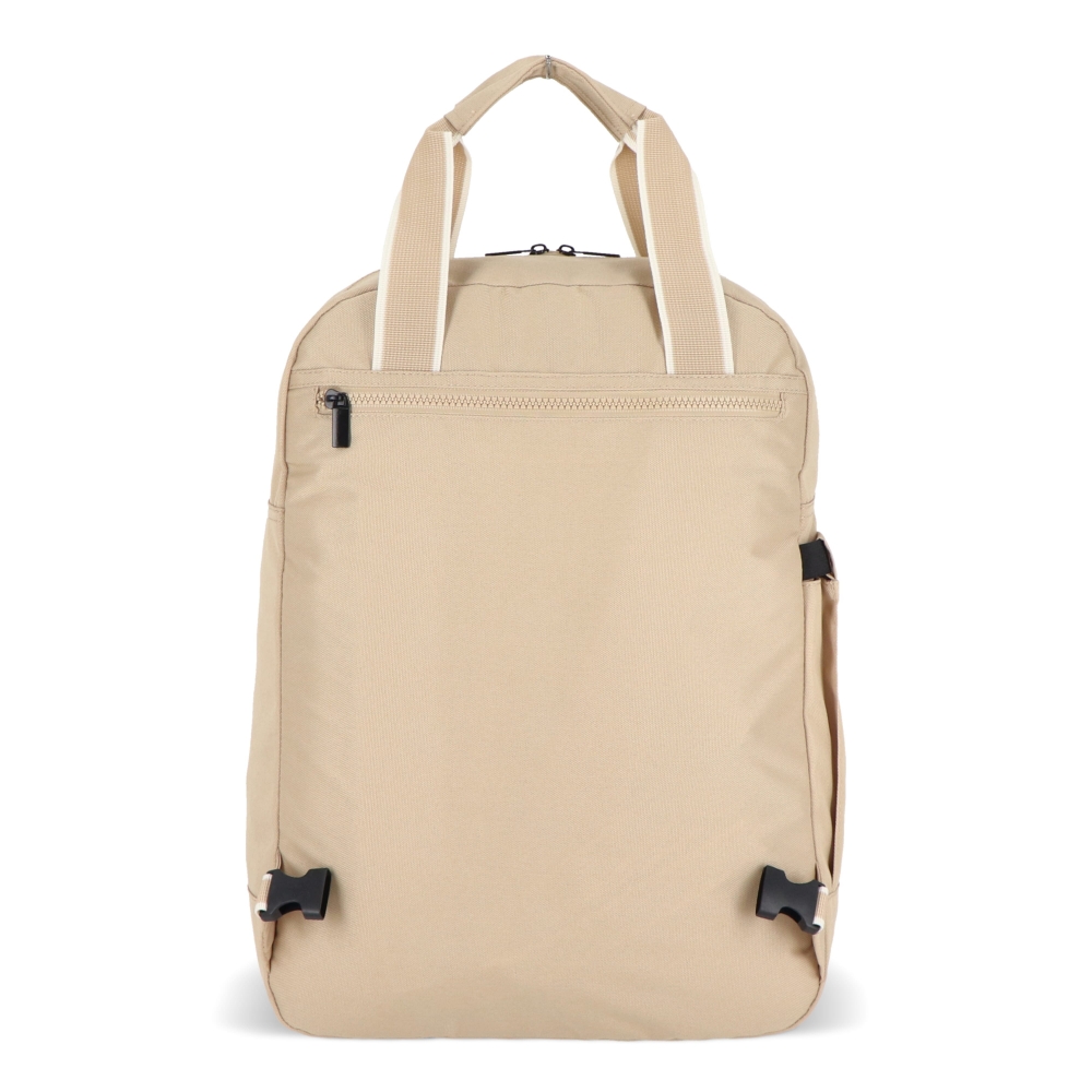 Artikel-Nr: ART57101N0054Dieser stylische und praktische Rucksack aus der InSideOut Koli-Serie ist die perfekte Wahl für alle, die viel unterwegs sind und Wert auf Funktionalität und Nachhaltigkeit legen. Hergestellt aus umweltfreundlichem rPET, einem recycelten Material, bietet der Koli Rucksack nicht nur ökologische Vorteile, sondern auch eine robuste und langlebige Qualität. Das geräumige Hauptfach enthält ein praktisches Laptopfach, während die Vorderseite mit einer Reißverschlusstasche und die Seite mit einer Stretch-Tasche für eine Flasche oder einen Regenschirm ausgestattet ist. Der robuste Reißverschluss sorgt dafür, dass Sie das Hauptfach leicht öffnen können und direkten Zugriff auf den Inhalt haben. Die Vordertasche ist ideal für Unternehmen, die ihr Logo oder ihren Firmennamen aufdrucken lassen möchten, was diese Tasche zu einer hervorragenden Werbelösung macht. Wenn Sie die Schultergurte in die Rückentasche stecken, können Sie den Rucksack leicht in eine Tasche umwandeln. Diese praktische Funktion in Kombination mit den robusten Griffen macht den Koli Rucksack nicht nur zu einem Rucksack, sondern auch zu einer praktischen Tasche.