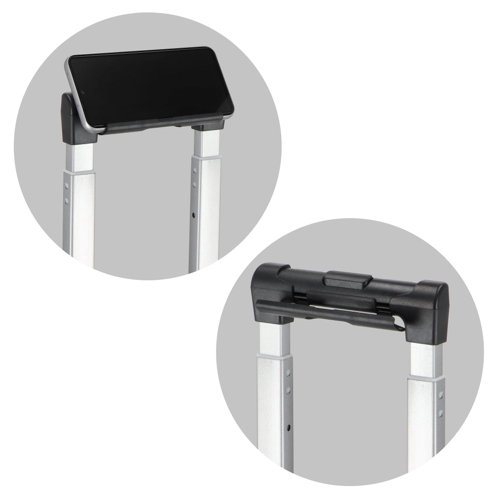 Artikel-Nr: ART57115N0062Der Rulla Kabinenkoffer von InSideOut bietet Komfort beim Reisen: vier Lenkrollen, TSA-Zahlenschloss, Handyhalterung im Griff, integrierter Getränkehalter hinten und zwei seitliche Haken für Tasche oder Nackenkissen. Im vorderen Fach eine gepolsterte Laptoptasche für Geräte bis 15,6 Zoll.