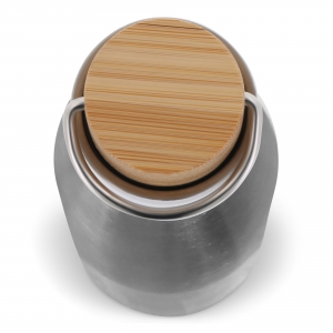 Artikel-Nr: ART98900N0005Doppelwandige Vakuum-Isolierflasche mit Holzdeckel. Mit einer matten Beschichtung für ein modernes Finish.