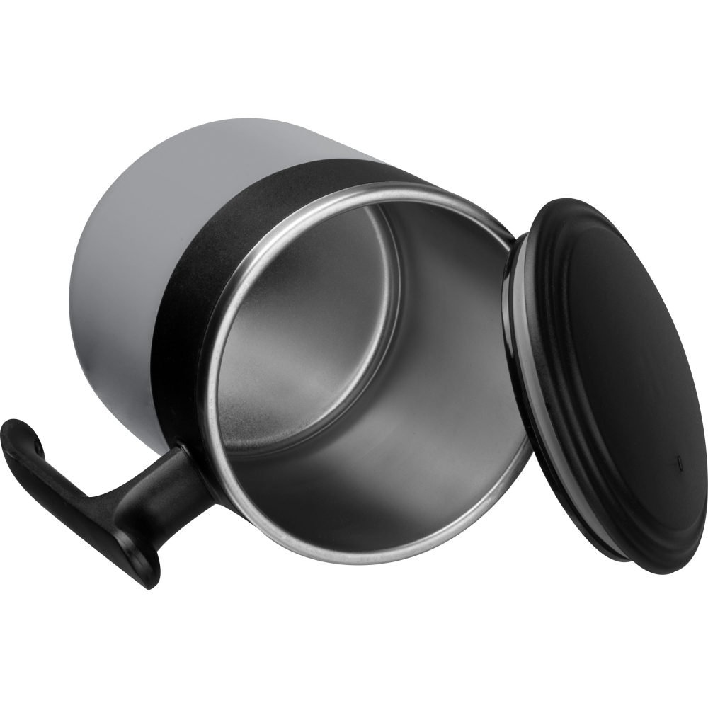 Artikel-Nr: EAG255907Doppelwandiger Isolierbecher aus Edelstahl mit rutschfestem Boden, Haltegriff und einem Füllvermögen von 300 ml. Ihre Werbung wird auf den Becher gedruckt.