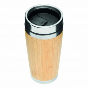 Artikel-Nr: INP56-0304571Isolierbecher BAMBOO DRINK, doppelwandig: aus Edelstahl, mit Bambus-Ummantelung, Deckel mit Silikondichtung und integrierter Trinköffnung, beschichteter Boden für gute Oberflächenhaftung, Füllmenge ca. 450 ml
