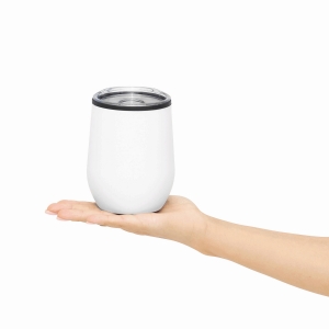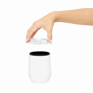 Artikel-Nr: INP56-0304561Isolierbecher BOWLY, doppelwandig: außen aus Edelstahl und innen aus Kunststoff, Deckel mit Silikondichtung und integrierter Trinköffnung, Füllmenge ca. 300 ml