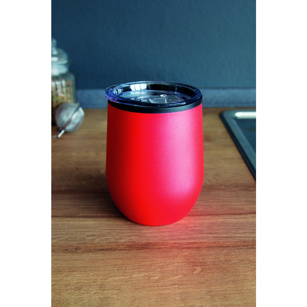 Artikel-Nr: INP56-0304564Isolierbecher BOWLY, doppelwandig: außen aus Edelstahl und innen aus Kunststoff, Deckel mit Silikondichtung und integrierter Trinköffnung, Füllmenge ca. 300 ml, in Box