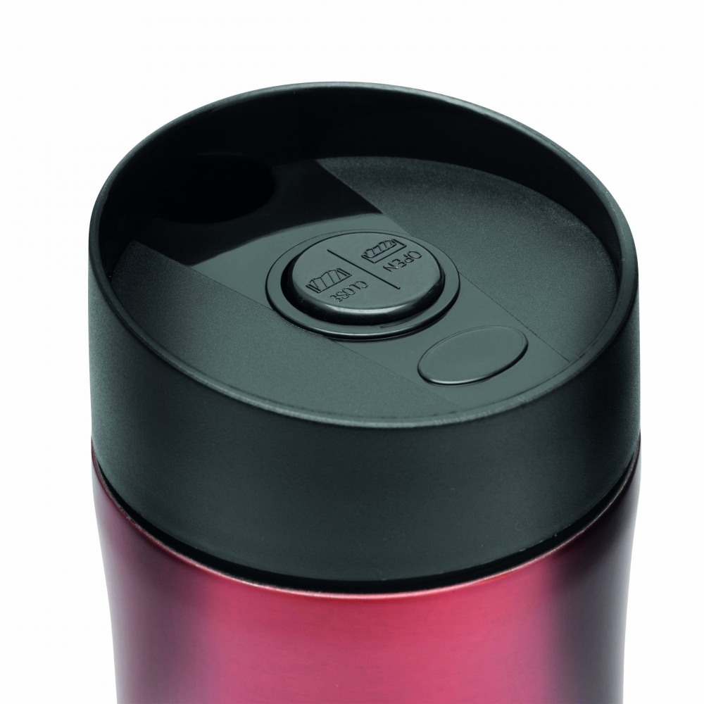Artikel-Nr: INP56-0304153Isolierbecher CLASSICO, doppelwandig: innen und außen aus Edelstahl, Kunststoff-Deckel mit sicherem Schraubverschluss, Push-Button OPEN / CLOSE und integrierter Trinköffnung, gummierter Standfuß für gute Bodenhaftung, Füllmenge ca. 380 ml