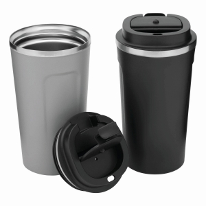 Artikel-Nr: INP56-0304536Vakuum-Isolierbecher COFFEE TIME, doppelwandig: innen und außen aus Edelstahl, schwarzer Kunststoff-Deckel mit sicherem Schraubverschluss, Silikon-Dichtring und integrierter Trinköffnung zum Aufklappen, Füllmenge ca. 500 ml, hält ca. 8 Stunden warm und bis zu 12 Stunden kalt, in Box