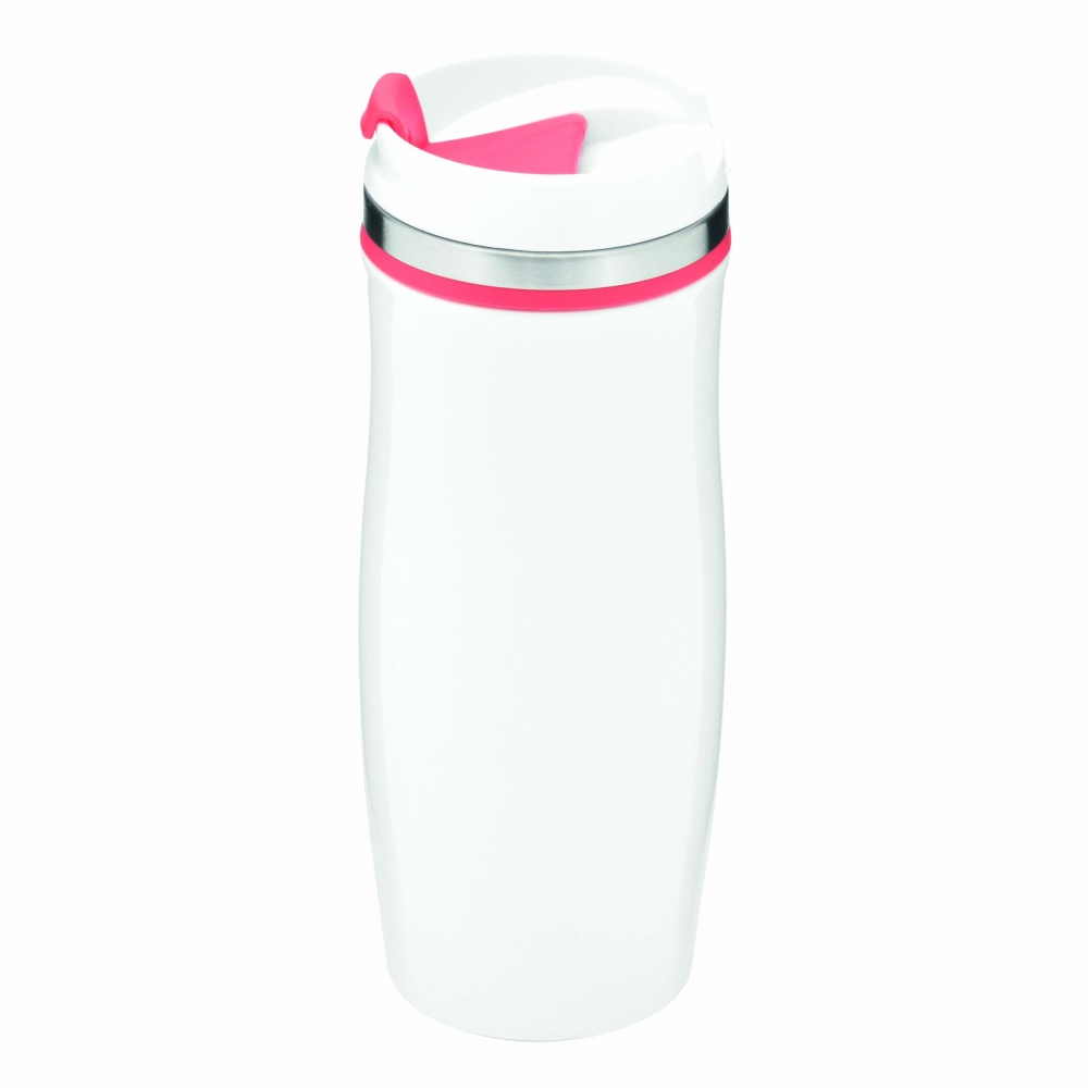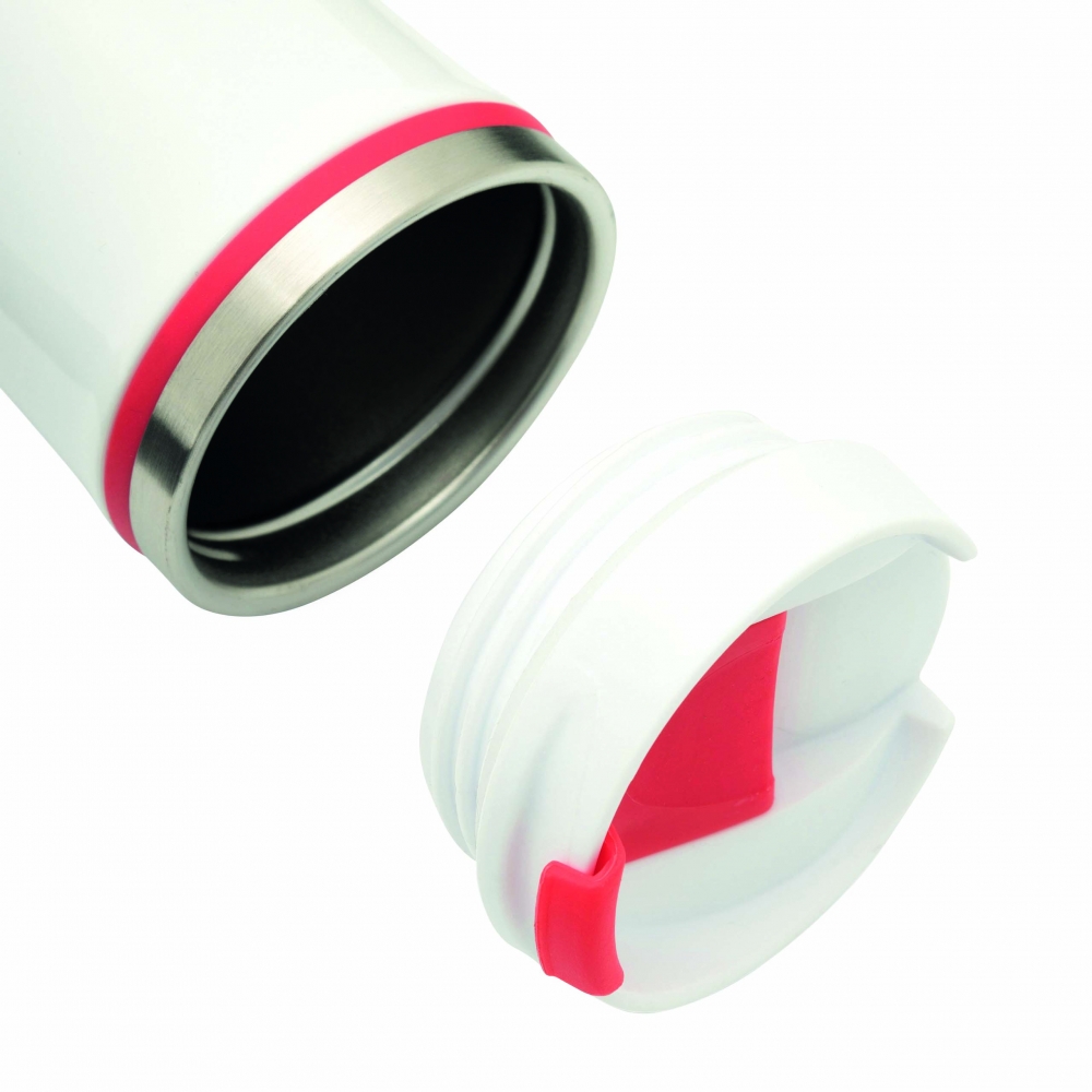 Artikel-Nr: INP56-0304139Isolierbecher CREMA, doppelwandig: innen und außen aus Edelstahl, Kunststoff-Deckel mit sicherem Schraubverschluss und integrierter Trinköffnung zum Aufklappen, farbig-gummierte Manschette oben sowie gummierter Standfuß für gute Bodenhaftung, Füllmenge ca. 400 ml, in Box
