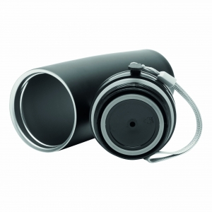 Artikel-Nr: INP56-0304255Isolierbecher EARLY MORNING, doppelwandig: innen und außen aus Edelstahl, Kunststoff-Deckel mit sicherem Schraubverschluss, Pushbutton OPEN / CLOSE und integrierter Trinköffnung, gummierter Standfuß für gute Bodenhaftung, Füllmenge ca. 380 ml, mit Handschlaufe