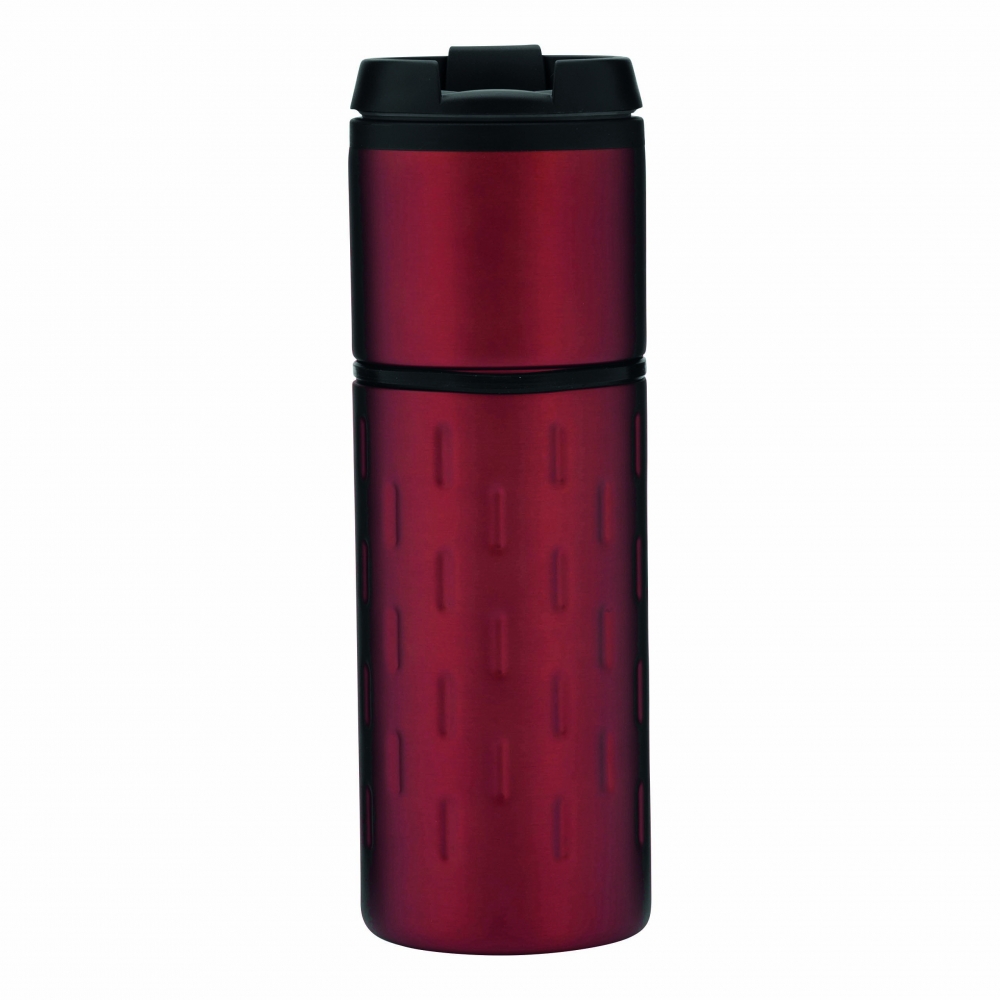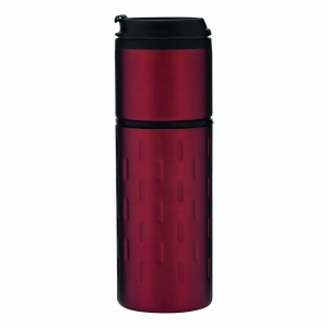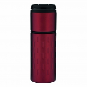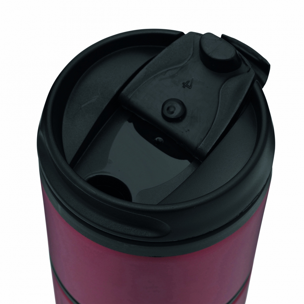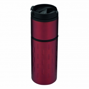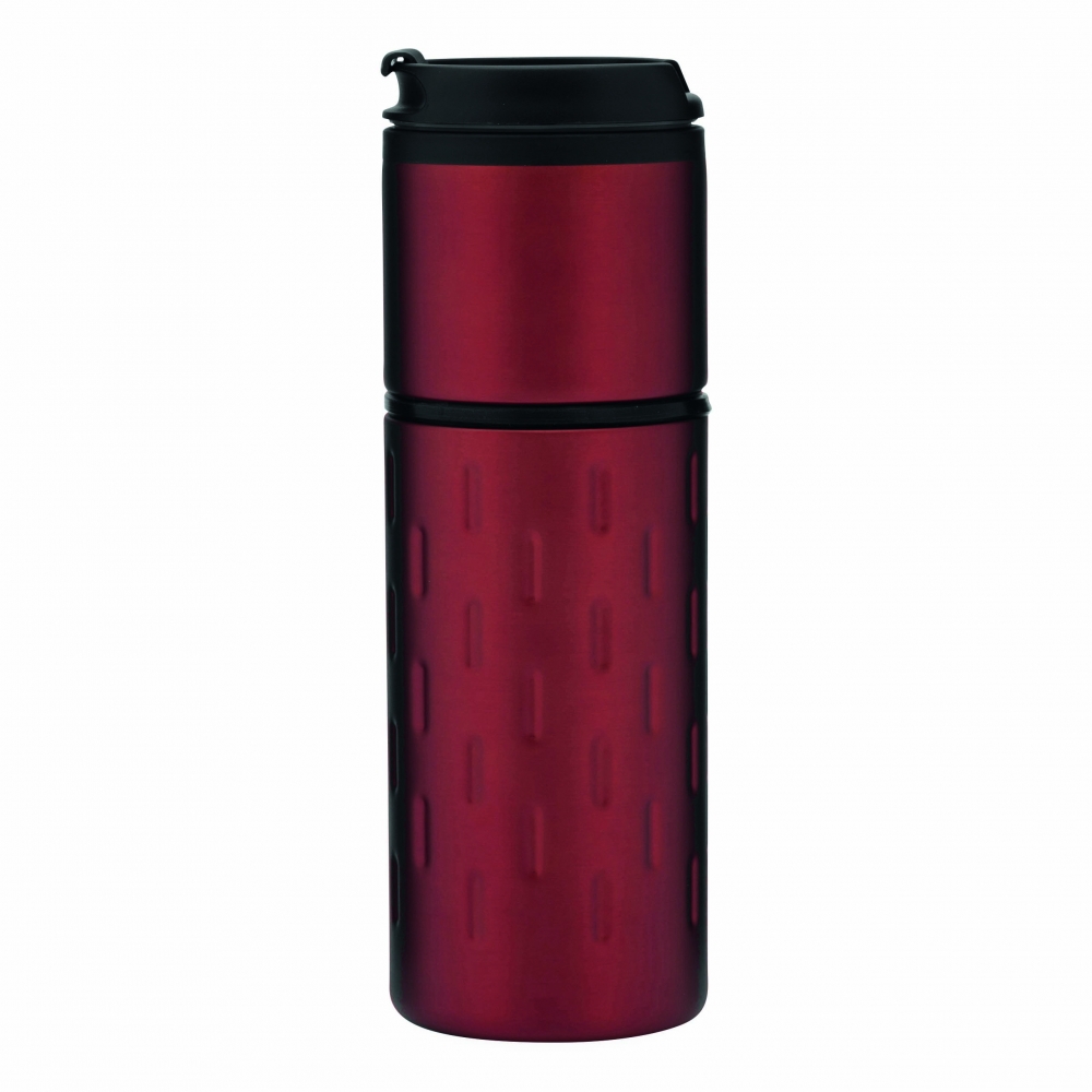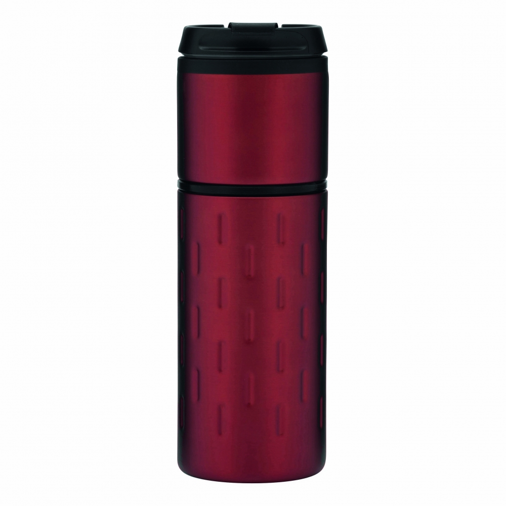 Artikel-Nr: INP56-0304213Isolierbecher EXCLUSIVE LIQUID, doppelwandig: außen aus Edelstahl in futuristischem Design und mit dekorativem Silikonring, innen aus Kunststoff, Deckel mit sicherem Schraubverschluss und integrierter Trinköffnung zum Aufklappen, gummierter Standfuß für gute Bodenhaftung, Füllmenge ca. 400 ml, in Box