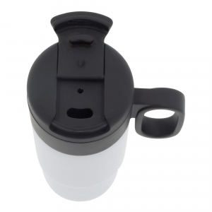 Artikel-Nr: ART98716N0001Doppelwandiger, vakuumisolierter Isolierbecher aus der Toppoint-Design-Serie 'Flow'. Der Becher ist mit einem Klappdeckel ausgestattet der 100% auslaufsicher ist und somit sicher zu transportieren ist. Die Innen- und Außenwand sind aus Edelstahl und hochwertig verarbeitet, das Getränk hält dadurch länger die gewünschte Temperatur. Getränke bleiben bis zu 12 Stunden warm und / oder bis zu 24 Stunden kalt.