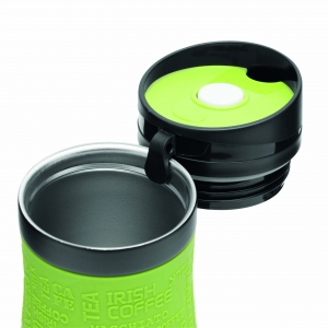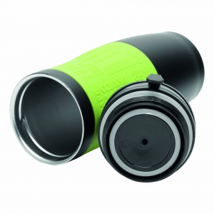 Artikel-Nr: INP56-0304146Isolierbecher GOLDEN DREAM, doppelwandig: innen und außen aus Edelstahl, Kunststoff-Deckel mit sicherem Schraubverschluss, Push-Button OPEN / CLOSE und integrierter Trinköffnung – außen Haken mit dem sich der Deckel an den Becher hängen lässt, farbig-gummierte Silikon-Manschette für optimale Griffigkeit, Füllmenge ca. 380 ml, in Geschenkbox