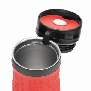 Artikel-Nr: INP56-0304148Isolierbecher GOLDEN DREAM, doppelwandig: innen und außen aus Edelstahl, Kunststoff-Deckel mit sicherem Schraubverschluss, Push-Button OPEN / CLOSE und integrierter Trinköffnung – außen Haken mit dem sich der Deckel an den Becher hängen lässt, farbig-gummierte Silikon-Manschette für optimale Griffigkeit, Füllmenge ca. 380 ml, in Geschenkbox
