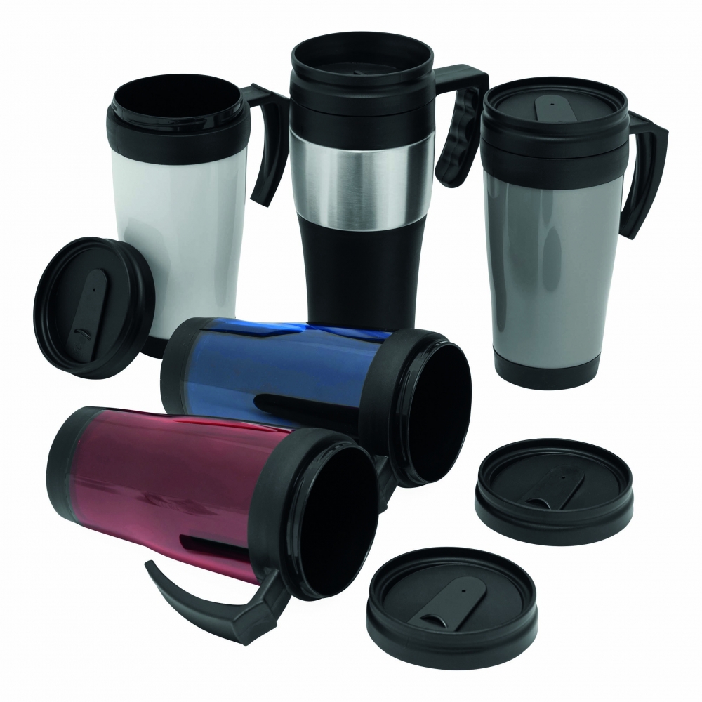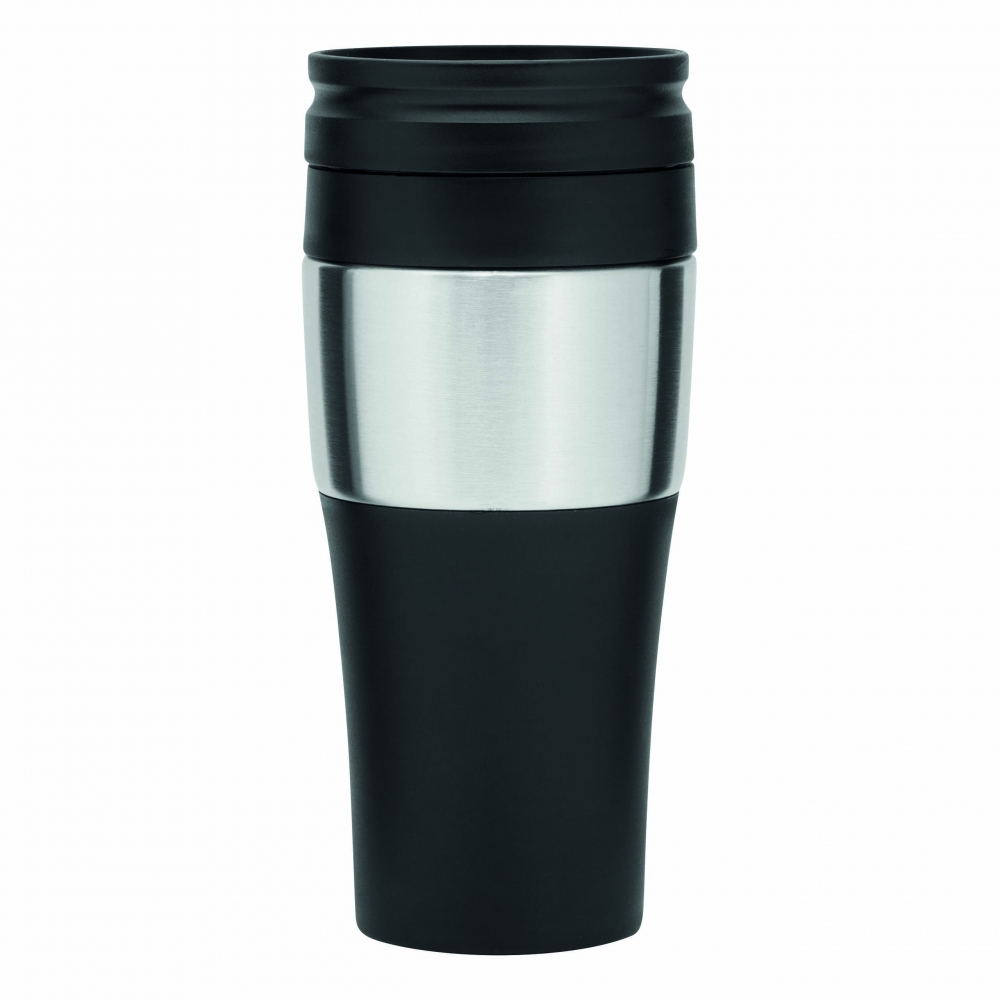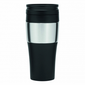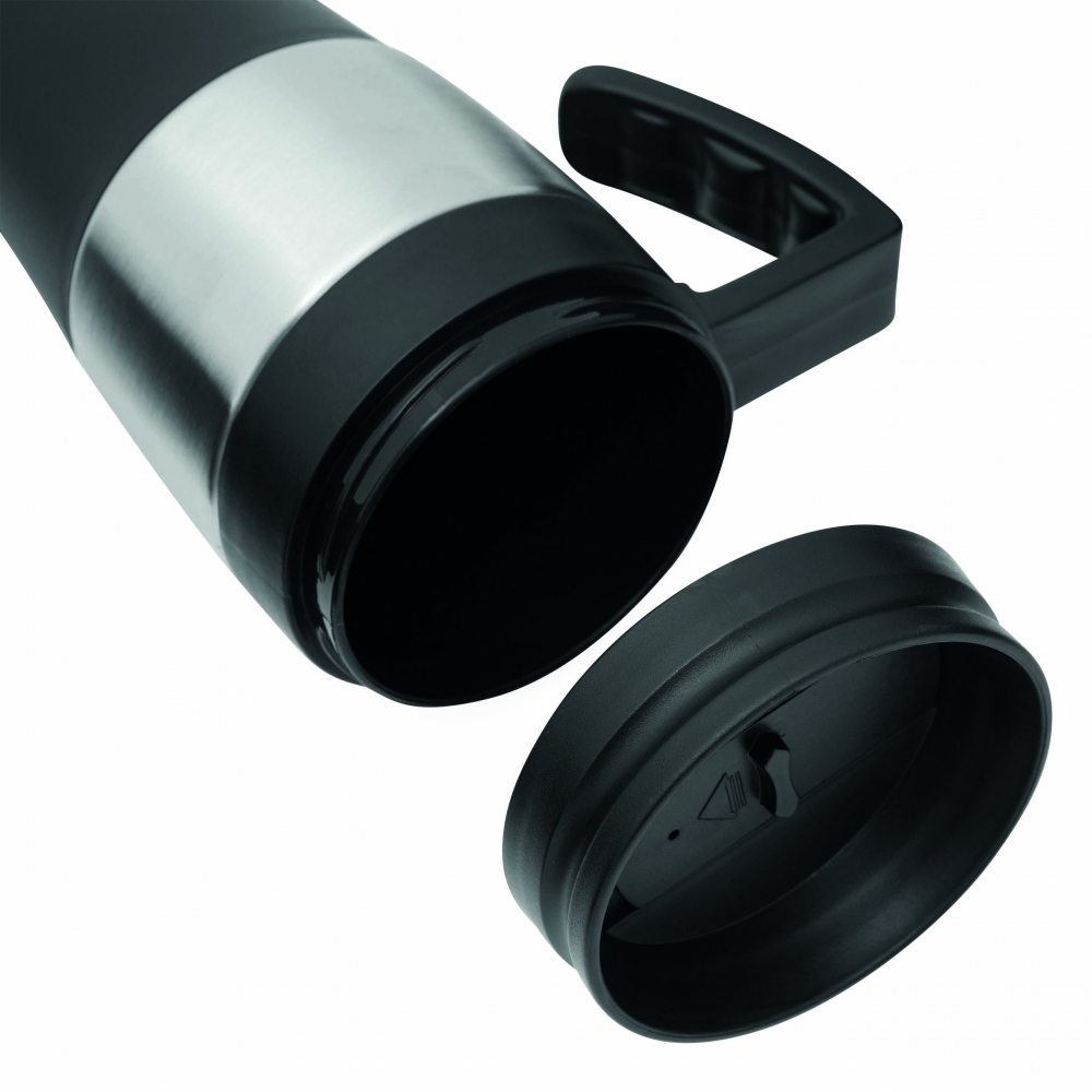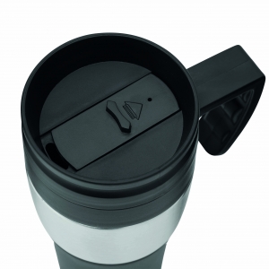 Artikel-Nr: INP56-0304322Isolierbecher HOT DRINK, doppelwandig: außen mit Edelstahlring, innen aus Kunststoff, mit praktischem Kunststoffgriff und Trinköffnung im Deckel, Füllmenge ca. 400 ml, in Box