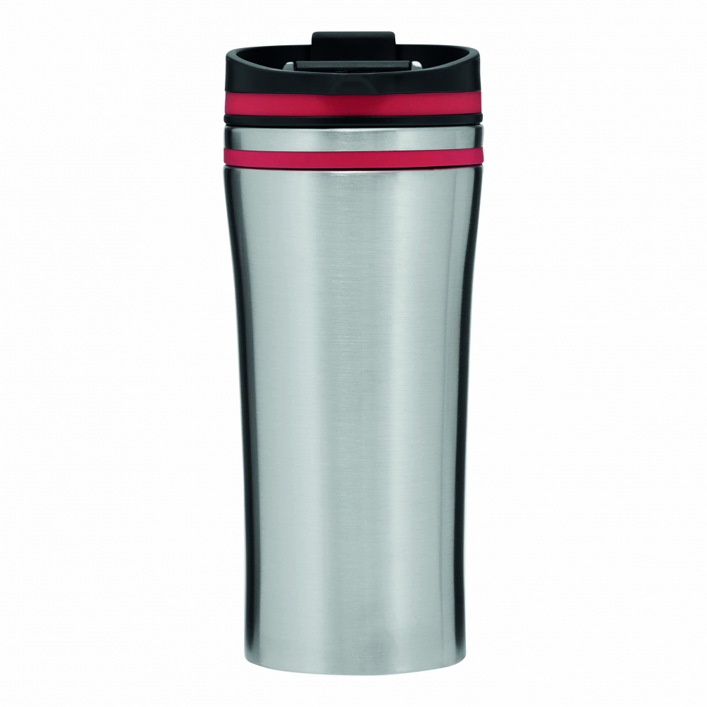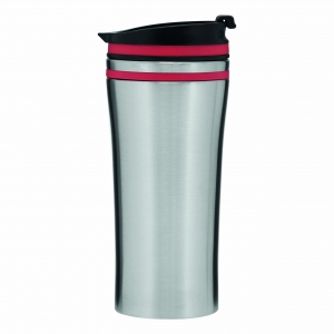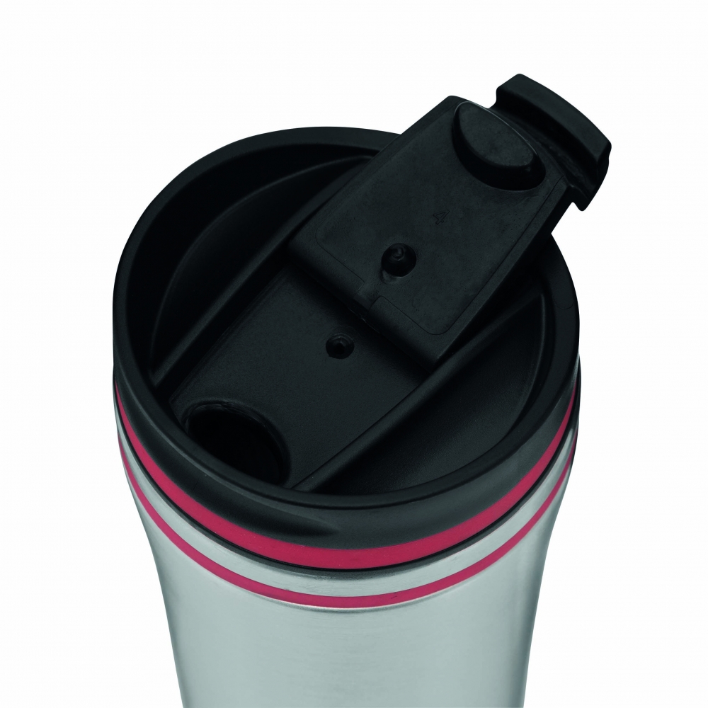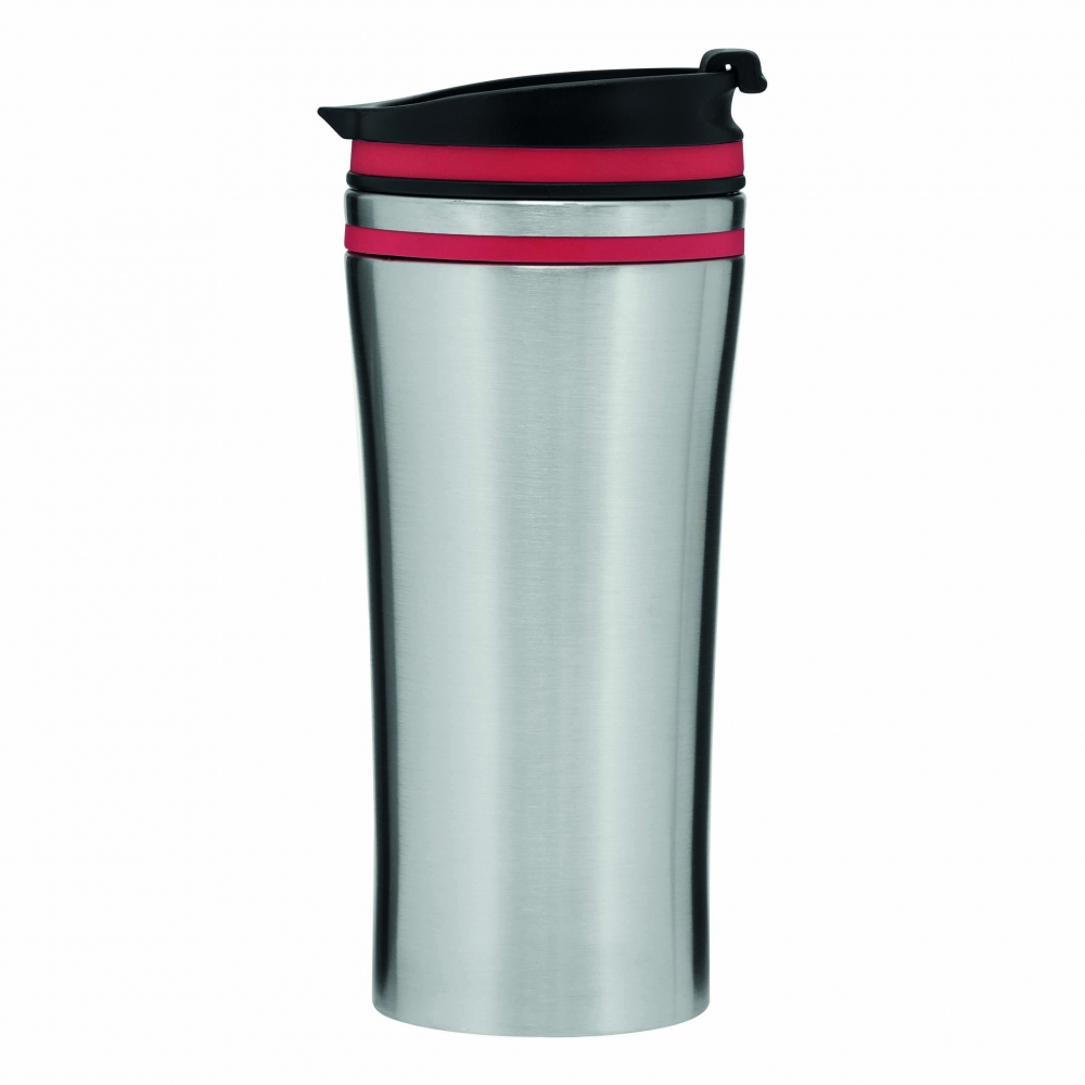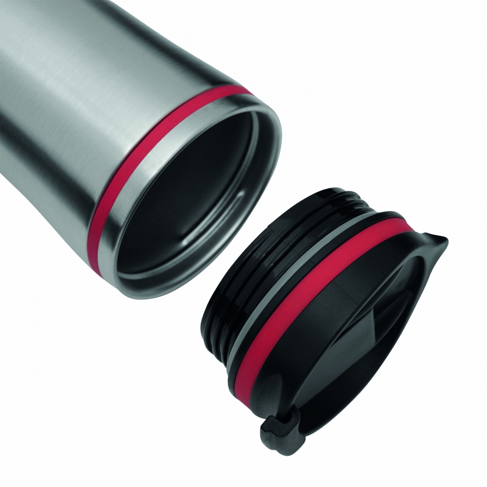 Artikel-Nr: INP56-0304218Isolierbecher LIBERICA, doppelwandig: innen und außen aus Edelstahl, Deckel mit sicherem Schraubverschluss und integrierter Trinköffnung zum Aufklappen, farbige Applikation, Füllmenge ca. 400 ml