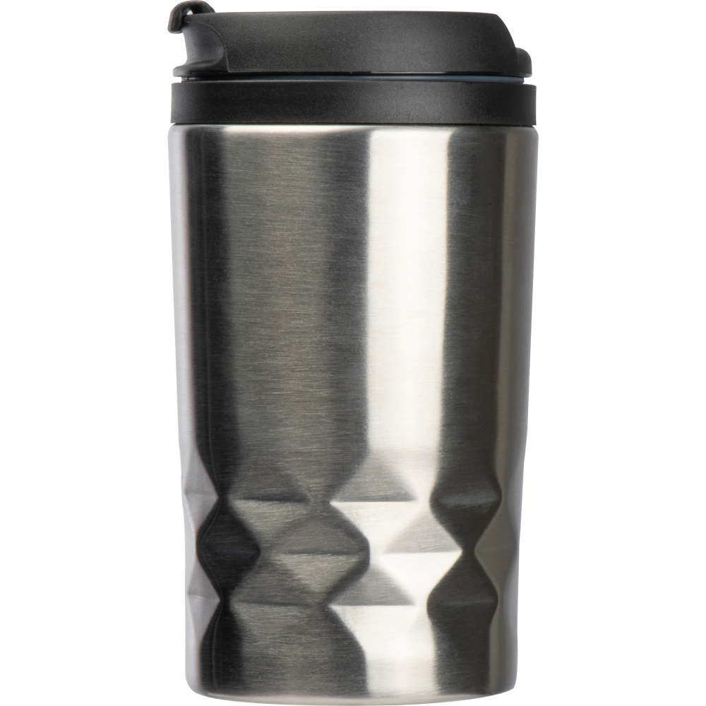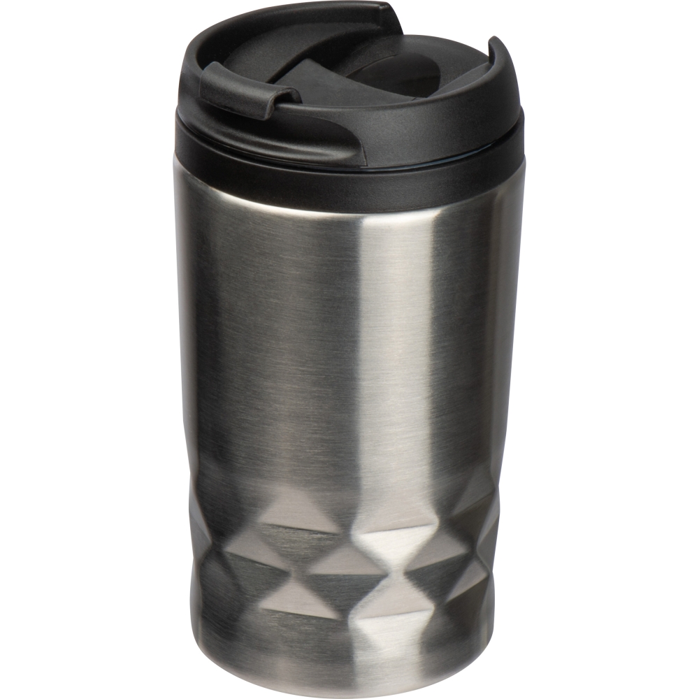Artikel-Nr: EAG154407Doppelwandiger Isolierbecher mit Edelstahlummantelung, auslaufsicherem Deckel und einem Füllvermögen von 250 ml. Ihre Werbung gravieren wir auf den Becher.