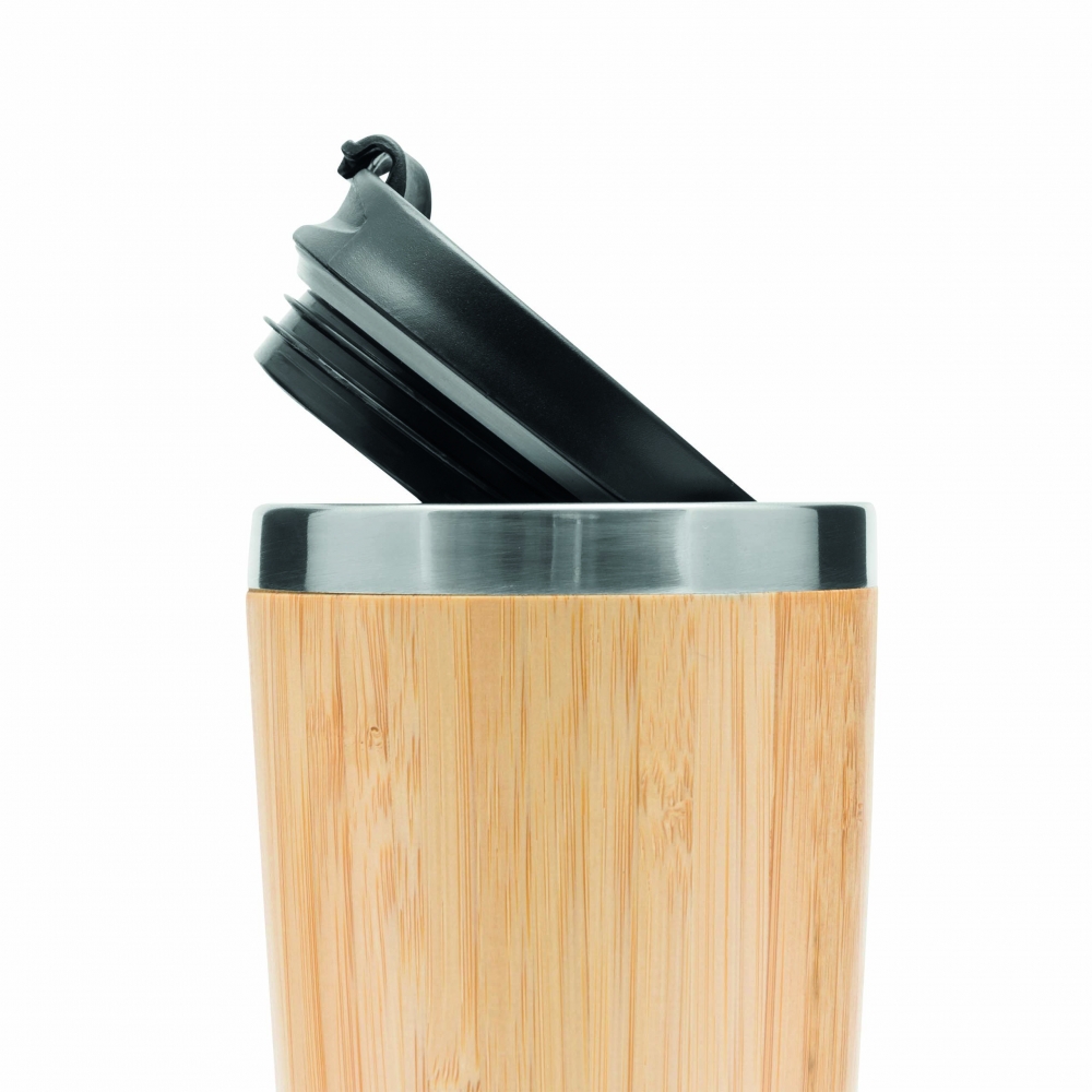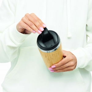 Artikel-Nr: INP56-0304574Isolierbecher TAKE BAMBOO, doppelwandig: aus Edelstahl, mit Bambus-Ummantelung, Deckel mit sicherem Schraubverschluss, Silikondichtung und integrierter Trinköffnung zum Aufklappen, beschichteter Boden für gute Oberflächenhaftung, Füllmenge ca. 450 ml