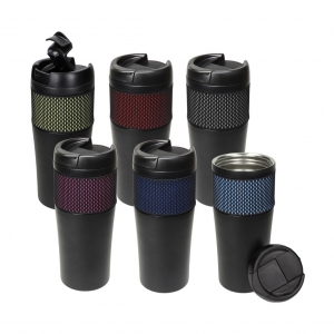 Artikel-Nr: ELT01373002-00001Sehr hochwertiger Isolierbecher mit grauer Manschette aus Silikon. Becher ist vakuum-isoliert und hält somit die Temperatur der Getränke länger konstant. Mit einem Schraubdeckel aus PP und einer verschließbaren Trinköffnung. Füllmenge: ca. 0,5 Liter.