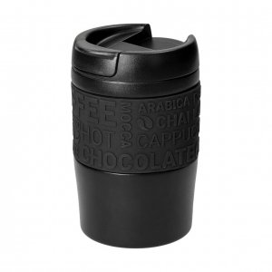 Artikel-Nr: ELT01372002-00001Kleiner Isolierbecher mit grauer Manschette aus Silikon. Becher ist vakuum-isoliert und hält somit die Temperatur der Getränke länger konstant. Mit einem Schraubdeckel aus PP und einer verschließbaren Trinköffnung. Füllmenge: ca. 0,3 Liter.