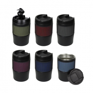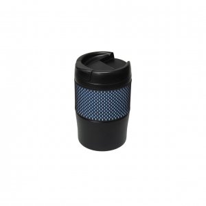 Artikel-Nr: ELT01372303-00000Kleiner Isolierbecher mit grauer Manschette aus Silikon. Becher ist vakuum-isoliert und hält somit die Temperatur der Getränke länger konstant. Mit einem Schraubdeckel aus PP und einer verschließbaren Trinköffnung. Füllmenge: ca. 0,3 Liter.