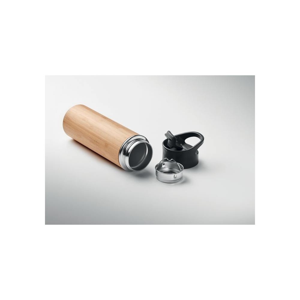 Artikel-Nr: OCBMO6371-40Doppelwandige Isolierflasche aus Edelstahl mit einer Abdeckung aus Bambus und einem griffigen Deckel aus PP. Füllmenge: 450 ml. Halten Sie Ihre Getränke mit dieser Isolierflasche kalt oder heiß. Egal, ob Sie Kaffee, Tee oder andere warme Getränke lieben, mit dieser Flasche können Sie sie dank des griffigen Deckels gut mitnehmen. Die Bambusabdeckung verleiht der Flasche ein natürliches Aussehen und hebt sie von anderen Flaschen ab. Auslaufsicher. Da Bambus ein natürliches Material ist, können Farbton und Maße pro Artikel variieren. Dies kann zu Abweichungen im Ergebnis der Veredlung führen. FSC®-certified | FSC 100%, N5.7, FSC-C213206