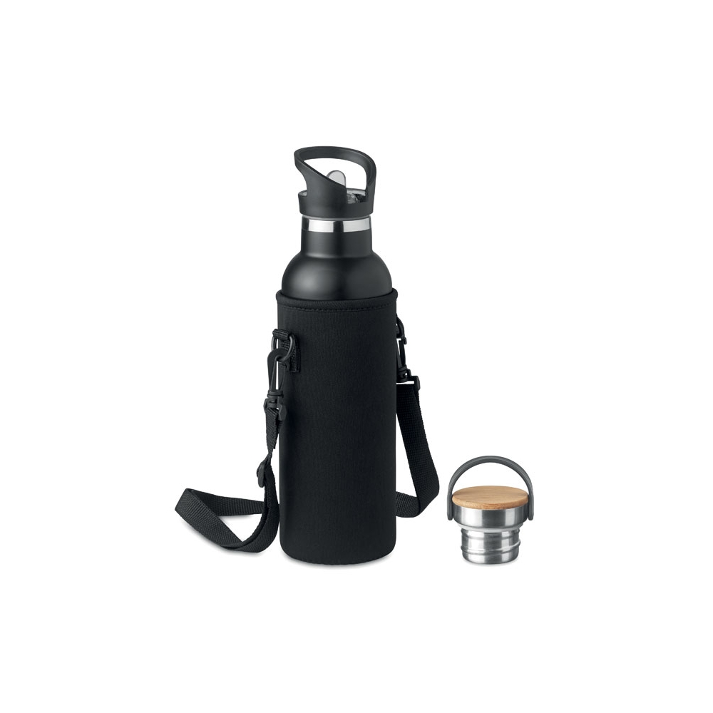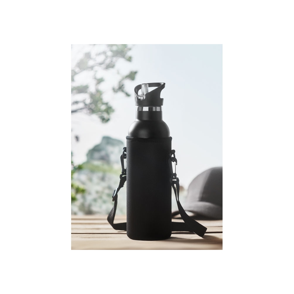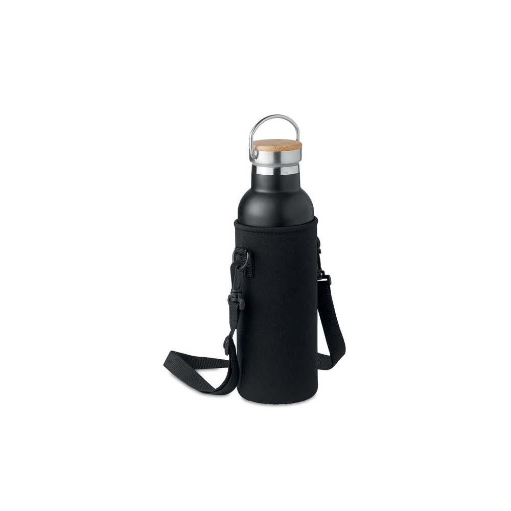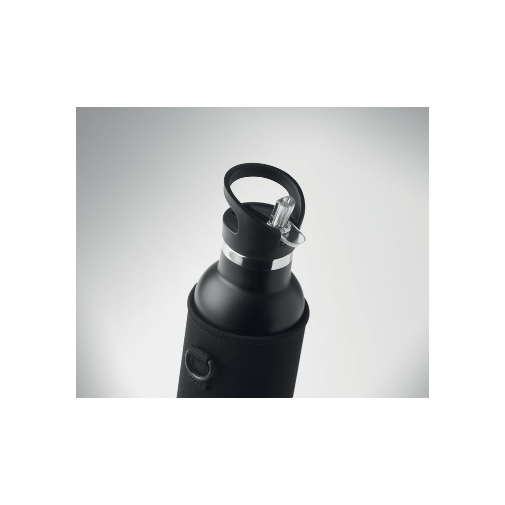 Artikel-Nr: OCBMO6366-03Doppelwandige Isolierflasche aus Edelstahl. Auslaufsicherer Schraubverschluss und separater auswechselbarer Deckel mit Mundstück. Inkl. Tragetasche aus Neopren. Füllmenge: 700 ml.