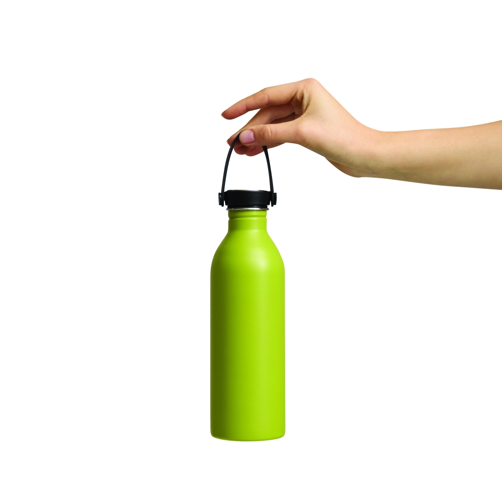 Artikel-Nr: INP56-0304706Isolierflasche GET REFRESH, einwandig: aus Edelstahl, matte Pulverlackierung, schwarzer Kunststoff-Deckel mit sicherem Schraubverschluss, Silikon-Dichtring und Silikon-Trageschlaufe, obere Deckelfläche aus Edelstahl, Füllmenge ca. 550 ml, hält ca. 2 Stunden warm und bis zu 4 Stunden kalt
