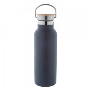 Artikel-Nr: AND808034-80Doppelwandige, vakuumisolierte Edelstahlflasche mit Tragedeckel aus Bambus. Füllmenge: 500 ml.