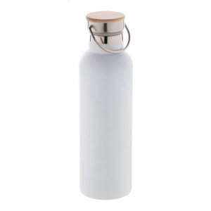 Artikel-Nr: AND800480-01Doppelwandige, vakuumisolierte Edelstahlflasche mit Tragedeckel aus Bambus. Füllmenge: 750 ml.