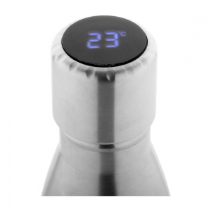 Artikel-Nr: AND844070Doppelwandige Vakuumflasche aus recyceltem Edelstahl mit LED Touch-Thermometer auf dem Deckel und eingebautem Akku. Füllmenge: 500 ml. Inkl. USB-Ladekabel.