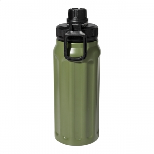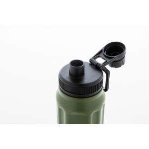 Artikel-Nr: AND800145-07Doppelwandige, isolierte Vakuumflasche aus recyceltem Edelstahl mit vertikalen Rillen. Mit PP-Trinkdeckel und integriertem Tragegriff. Füllmenge: 540 ml.
