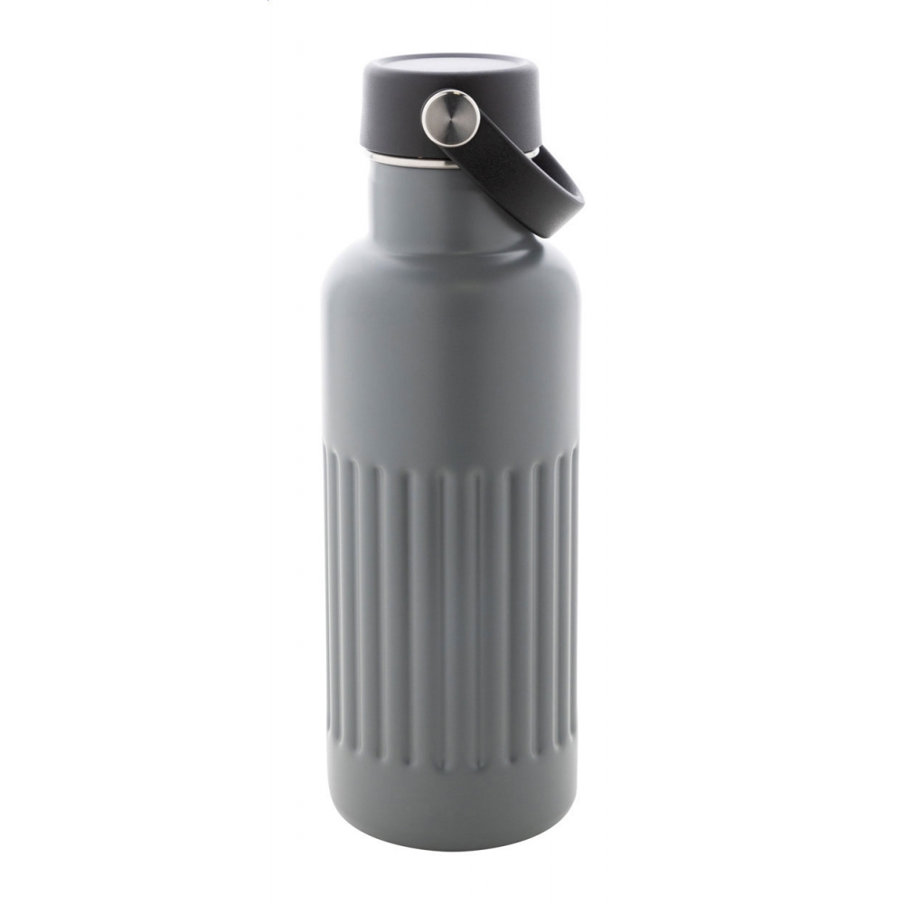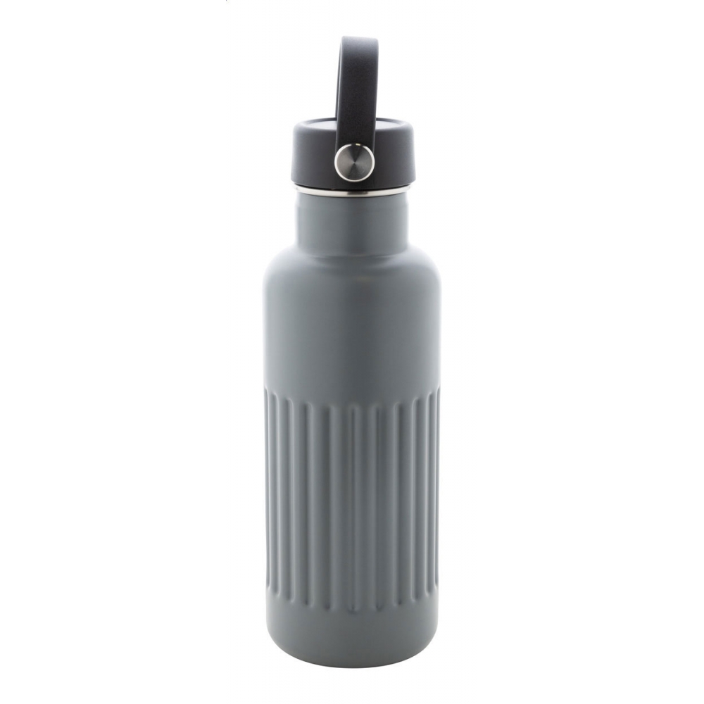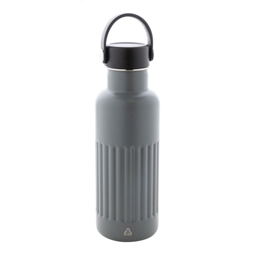 Artikel-Nr: AND808232-80Doppelwandige, recycelte Edelstahl-Trinkflasche mit Vakuumisolierung und PP-Kunststoff-Trageverschluss. Füllmenge: 500 ml.